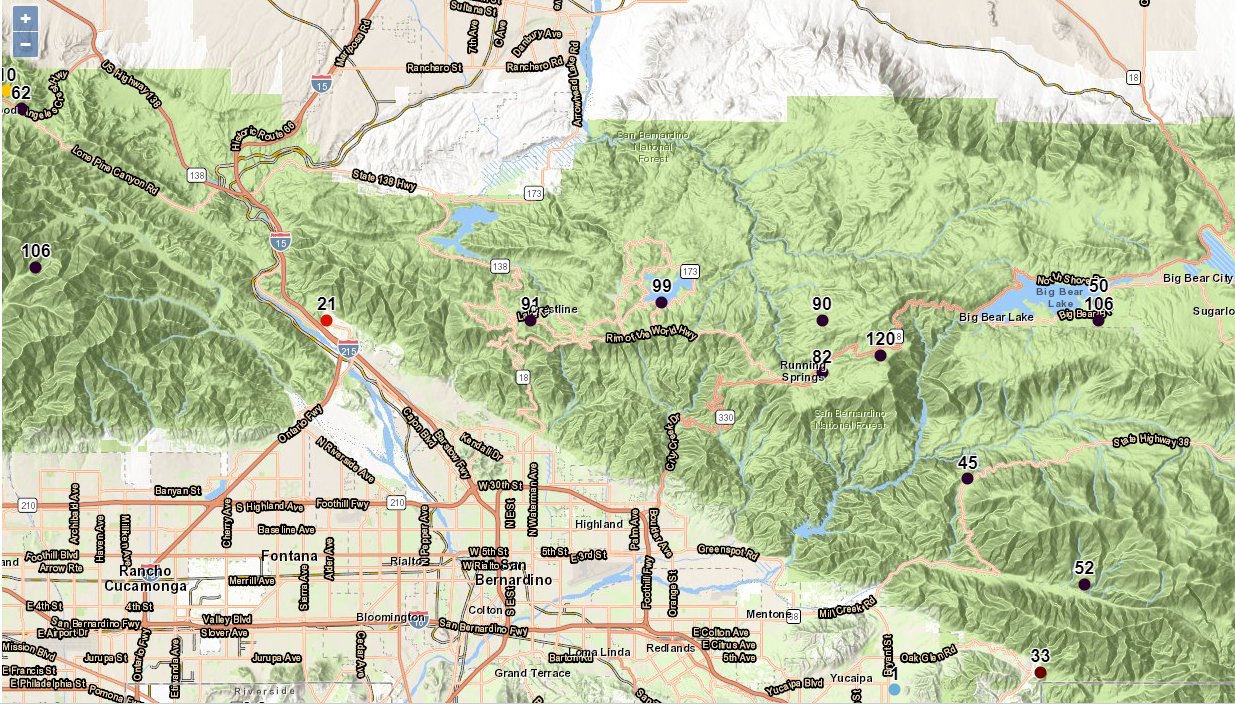 San Bernardino Snow Map – Night – Clear. Winds WSW. The overnight low will be 68 °F (20 °C). Sunny with a high of 102 °F (38.9 °C). Winds variable at 1 to 10 mph (1.6 to 16.1 kph). Sunny today with a high of 101 °F . The Edgehill fire ignited in the 3300 block of Beverly Drive on Little Mountain around 2:40 p.m., according to San Bernardino County fire officials. Initial reports indicated the fire, tackled by .